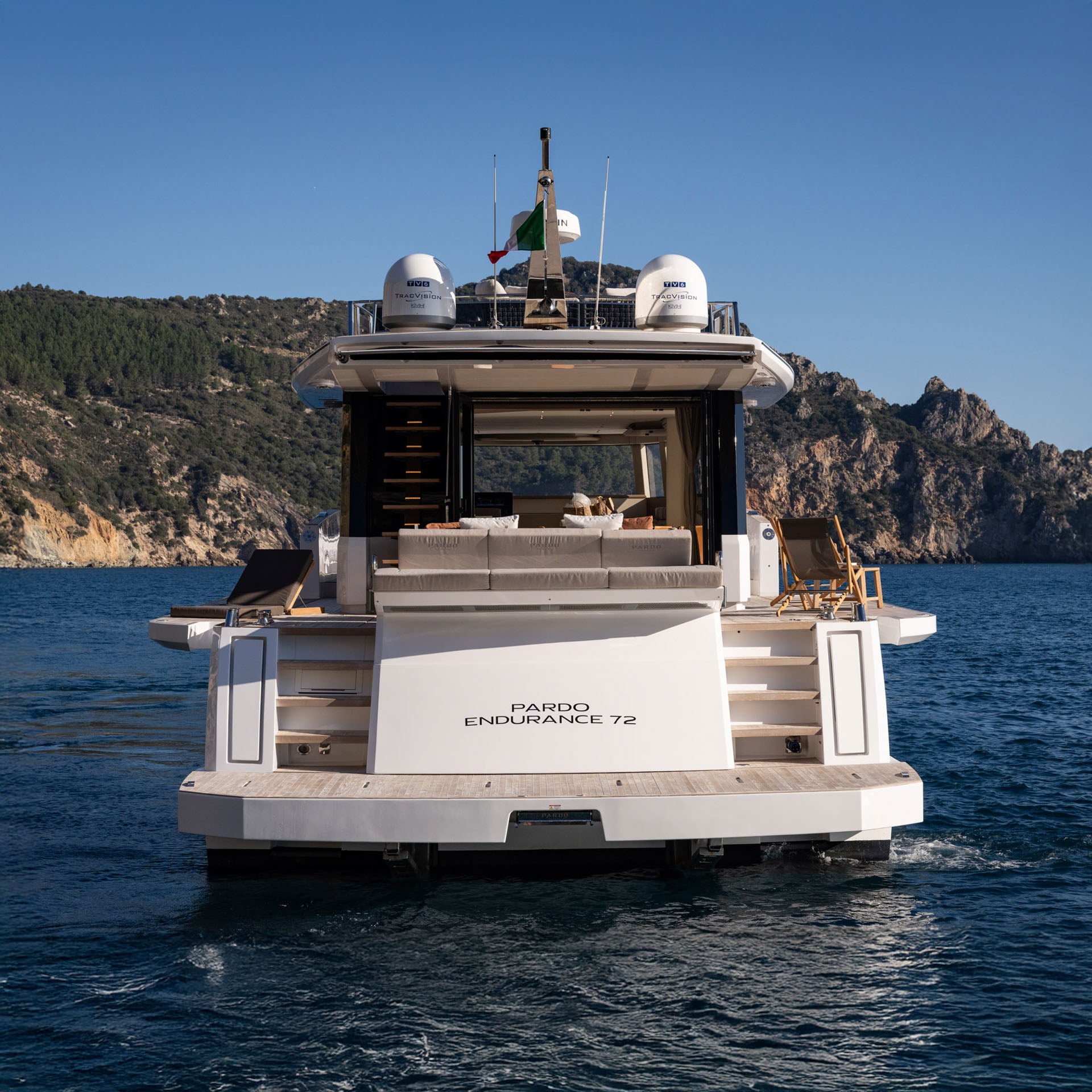 For those seeking to elevate their experience at sea, the Endurance 72 takes the iconic styling of the Pardo Yachts brand to the next level, with its unmistakable reverse bow. Designed for long-range cruising in both displacement and planing modes, the E72 stands out for its perfect balance of spacious volumes, efficiency, quiet operation, and low fuel consumption, thanks to its innovative eco-speed parameter. Committed to charting a course toward sustainability, the E72 accommodates hybrid engine options. On every journey, the E72 delivers unmatched comfort and striking elegance, both outdoors and indoors, with a layout that maximizes space and volume, alongside design choices that reflect the owner’s personality.