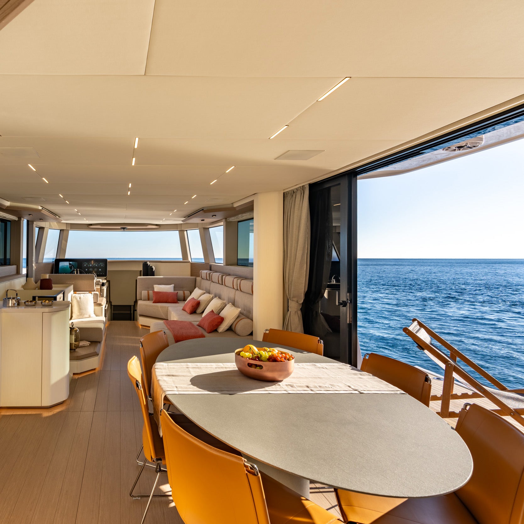 The living space on the decks of the E72 is exceptional, offering a privileged connection with the sea.