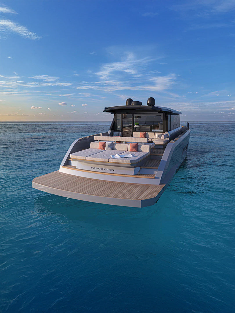 The Pardo GT65 is also equipped with a garage, a feature typical of larger yachts, capable of storing up to 3m tenders.