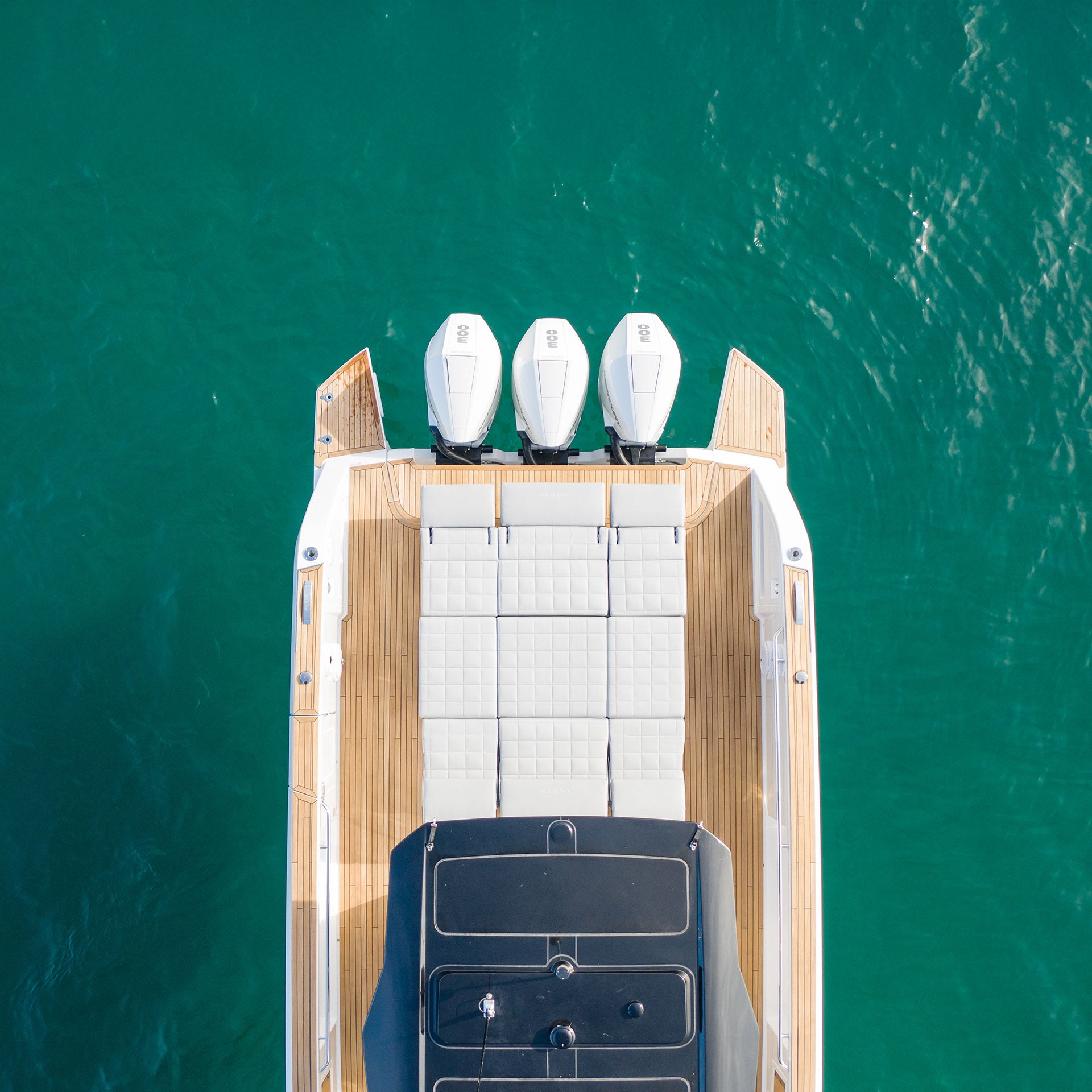 A blend of design and performance defines the Pardo 38 R, the 'small' outboard in the walkaround range, which enhances the essence of the Pardo character with its reverse bow and sleek lines. The addition of outboard engines further amplifies its sportiness, ensuring higher speeds and thrilling performances. Perfect for daily outings with family and friends, safe and easy to maneuver, the P38 Outboard promises adrenaline and fun for owners seeking an even more spirited driving experience. Also ideal as a luxury tender for large yachts, each P38 Outboard is a masterpiece of Italian design, capable of merging tradition and innovation, with extensive customization options to meet the desires of the most demanding owners.
