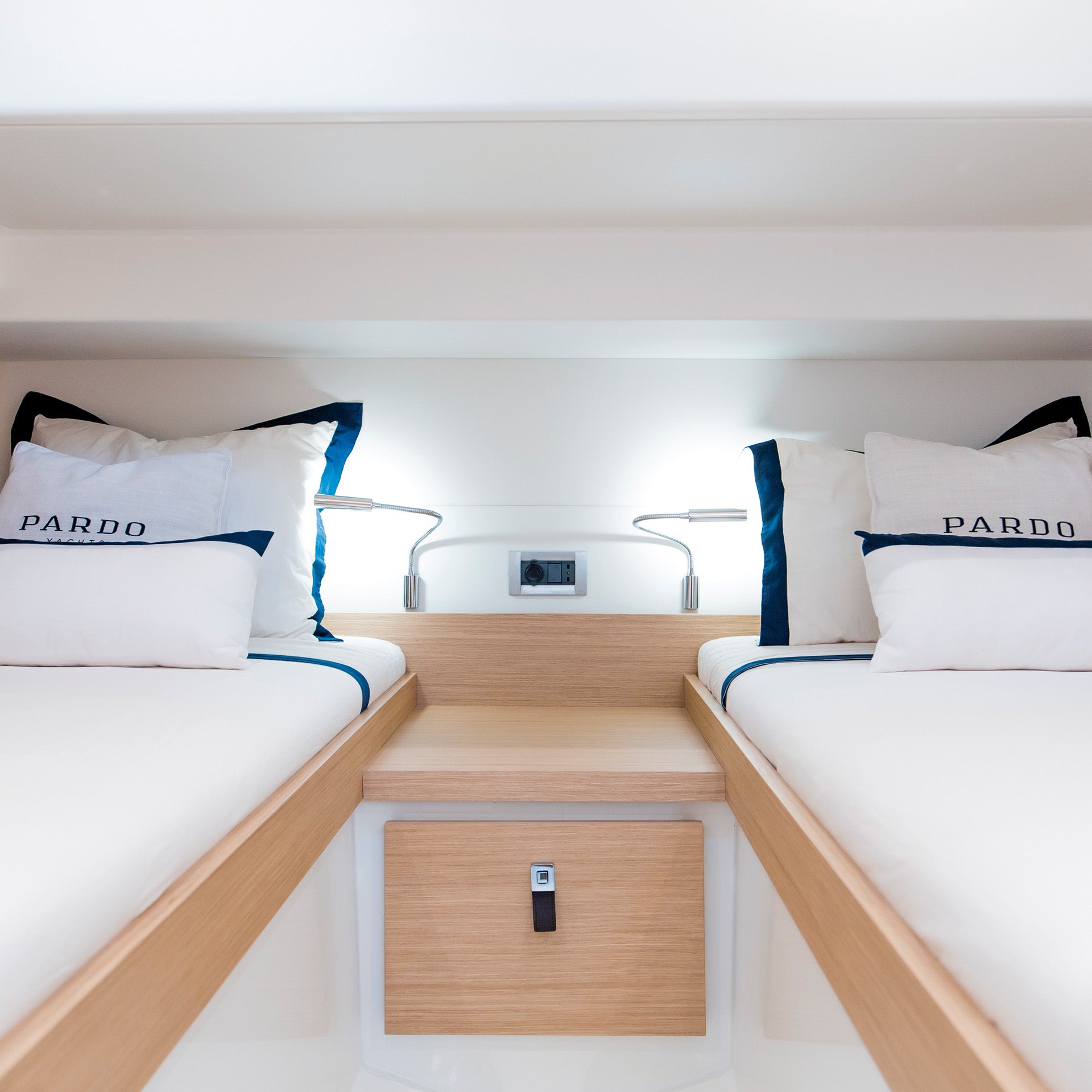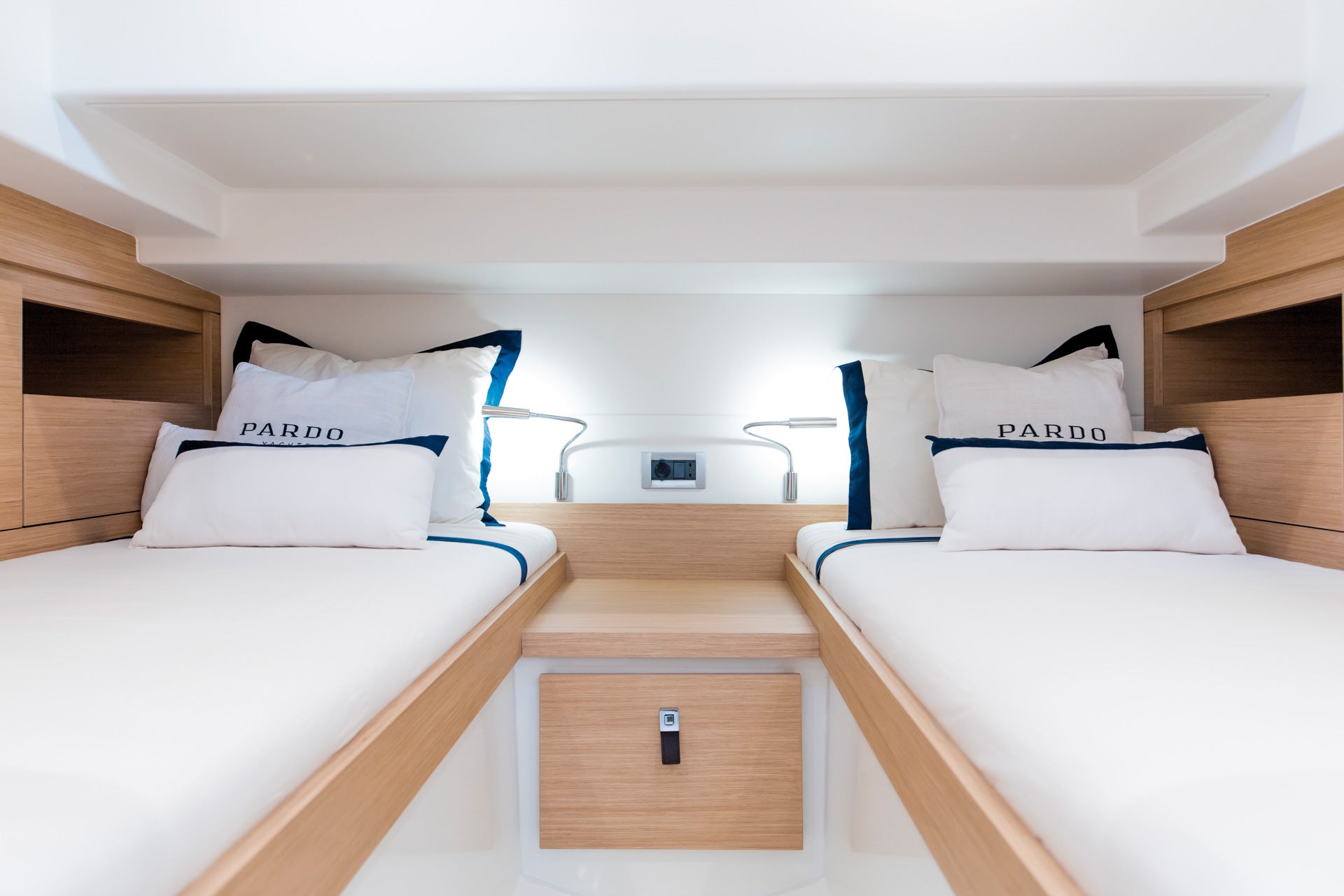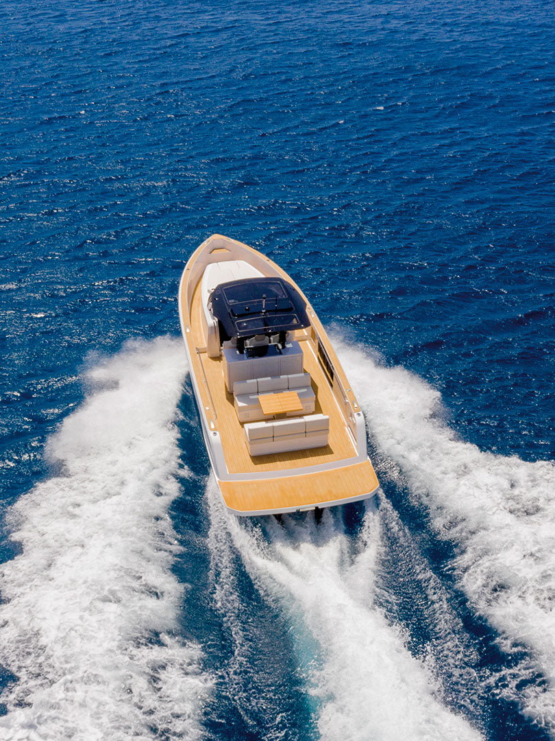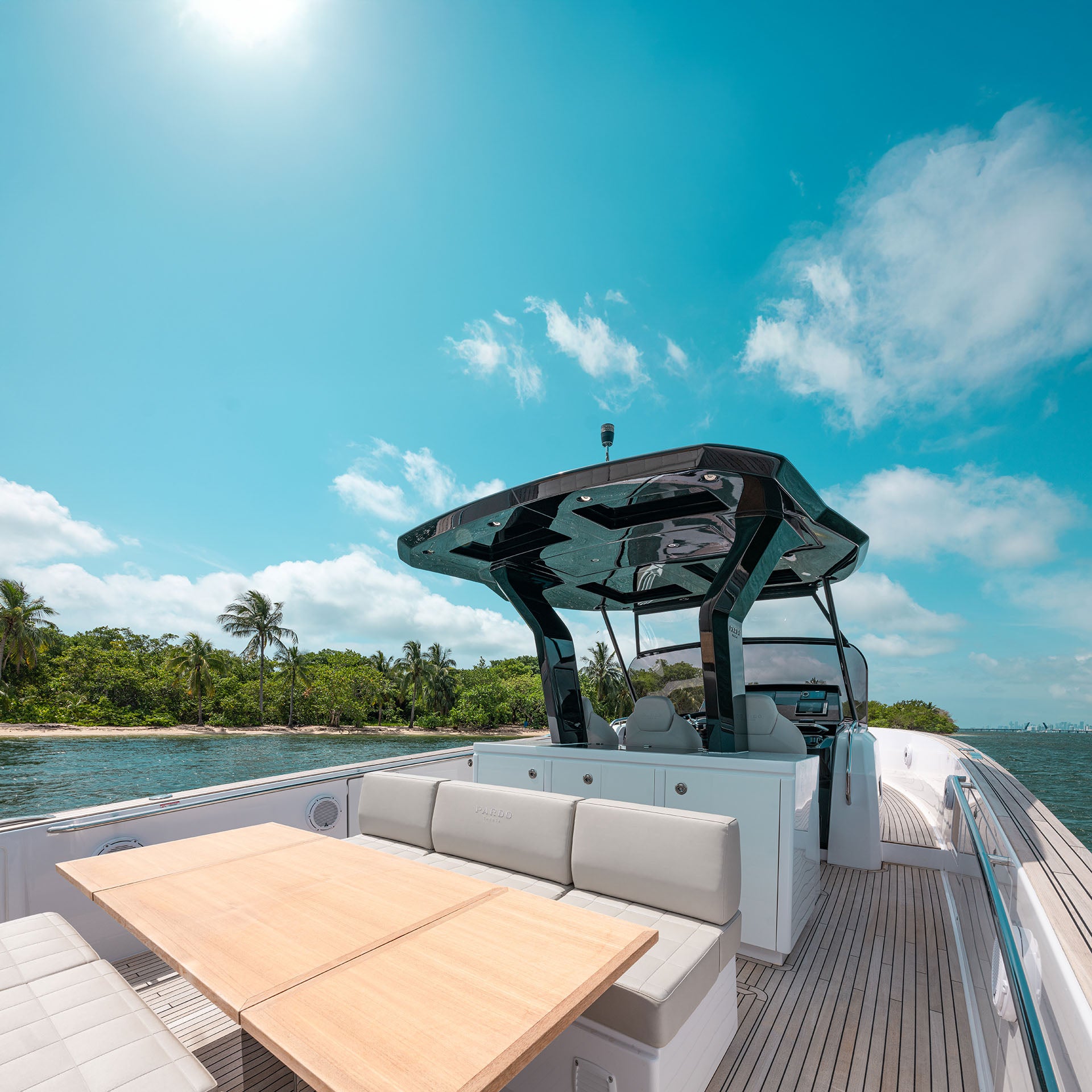 The Pardo 38 is a perfect blend of design and functionality, standing out as the ‘smallest’ in the Walkaround range while proudly showcasing the distinctive traits of Pardo’s identity. From its iconic inverted bow to its sleek, clean lines, the Pardo 38 is instantly recognizable on the water. Designed for day trips with family and friends, this yacht is safe, easy to maneuver, and delivers an exhilarating performance to owners who enjoy a dynamic, sporty experience. With its striking style and agile, high-speed character, the Pardo 38 also serves as a luxurious tender for larger yachts. Each Pardo 38 is a masterpiece of Italian craftsmanship, seamlessly balancing modern innovation with timeless elegance. Its generous, versatile layout is designed to adapt to the owner’s unique preferences, creating truly one-of-a-kind results.
